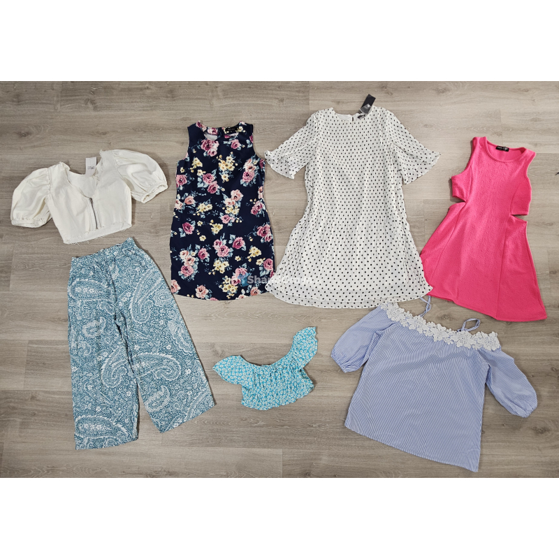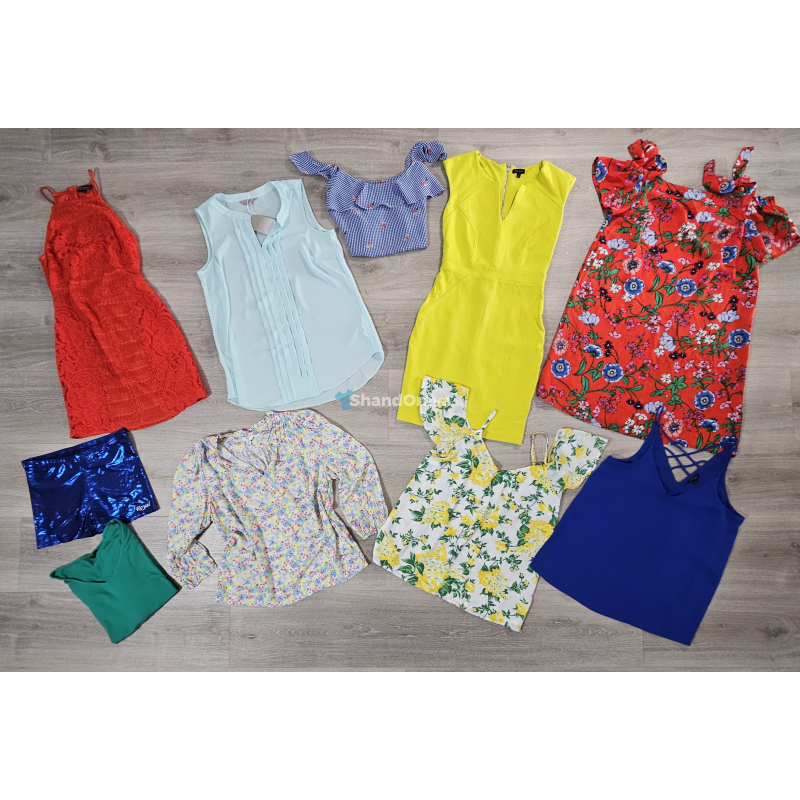 5 kg balík second hand dámskeho letného oblečenia v kvalite Cream - extra trieda, triedený podľa veľkostí. Balík obsahuje - šaty, sukne, tričká, topy, blúzky, kraťasy, nohavice, tielky, saká, overaly.... .